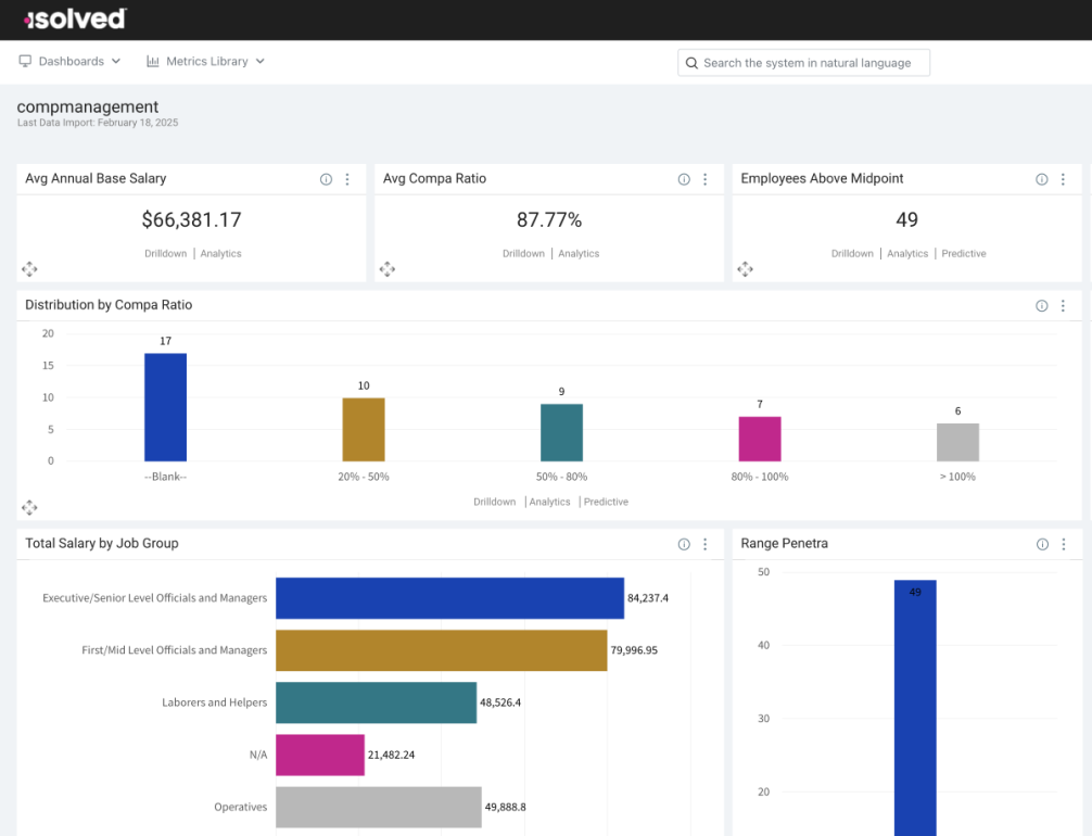 Access data from over six million anonymized employee records across thousands of organizations to compare your own internal positions and define improvements. isolved Benchmark Insights offers position-specific industry averages for salary, tenure and turnover. Eliminate the guesswork—evaluate where you stand, create an action plan and move your business forward.
