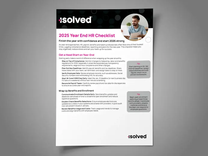 Staying compliant with federal, state and local employment laws can feel overwhelming. A single missed detail can lead to costly mistakes and added stress for your team. Partnering with isolved HR Compliance Services can help you simplify the process with expert support.