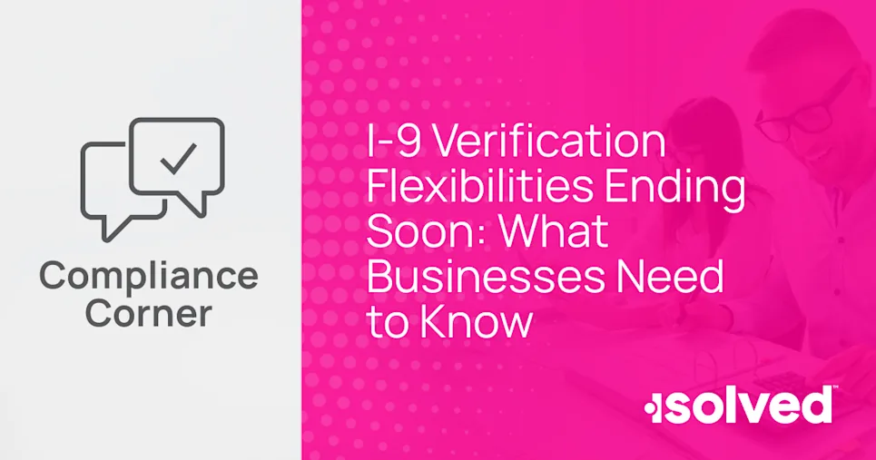 The COVID-19 pandemic changed how many companies conducted business and hired employees. At the onset, federal changes were made to add flexibility to the way companies verified an employee’s eligibility with their Form I-9. These changes are coming to an end on July 31, 2023. isolved’s HR Business Partner Lisa Holman discusses the upcoming Form I-9 changes in this month’s Compliance Corner.