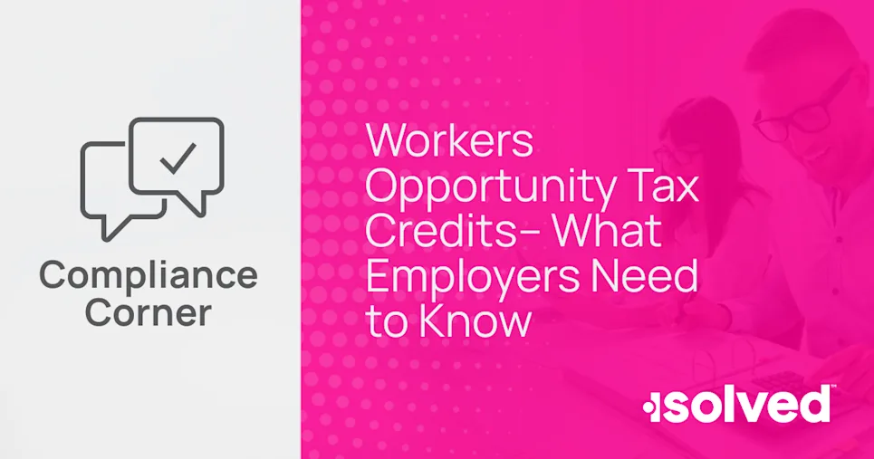 Organizations are constantly looking for ways to boost their bottom lines. Many can find savings through their employees and tax credits. In our latest Compliance Corner, our Senior HR Consultant Lisa Bright answers the top questions about Workers Opportunity Tax Credits.
