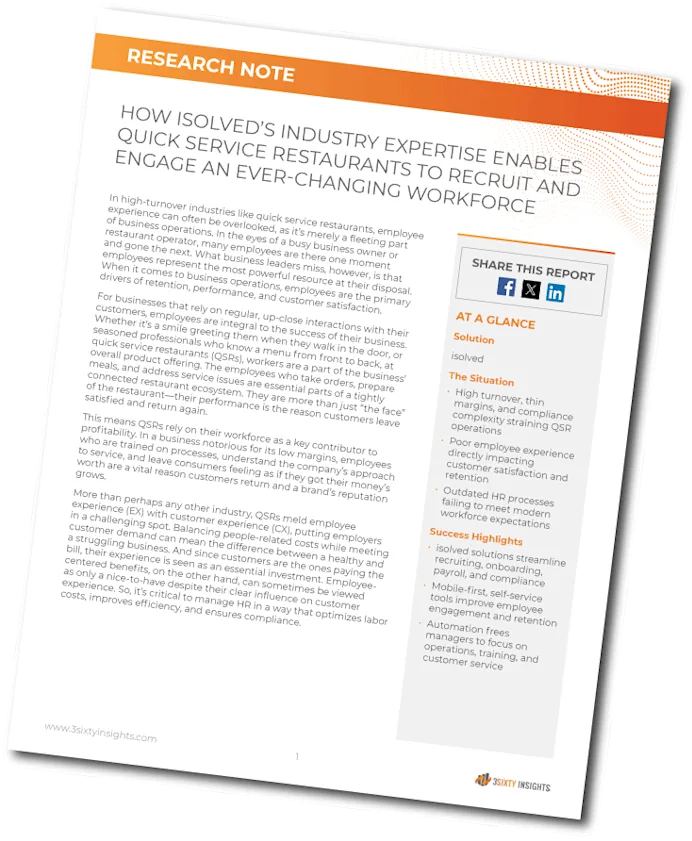 Research Note: How isolved’s Industry Expertise Enables Quick Service Restaurants to Recruit and Engage an Ever-Changing Workforce