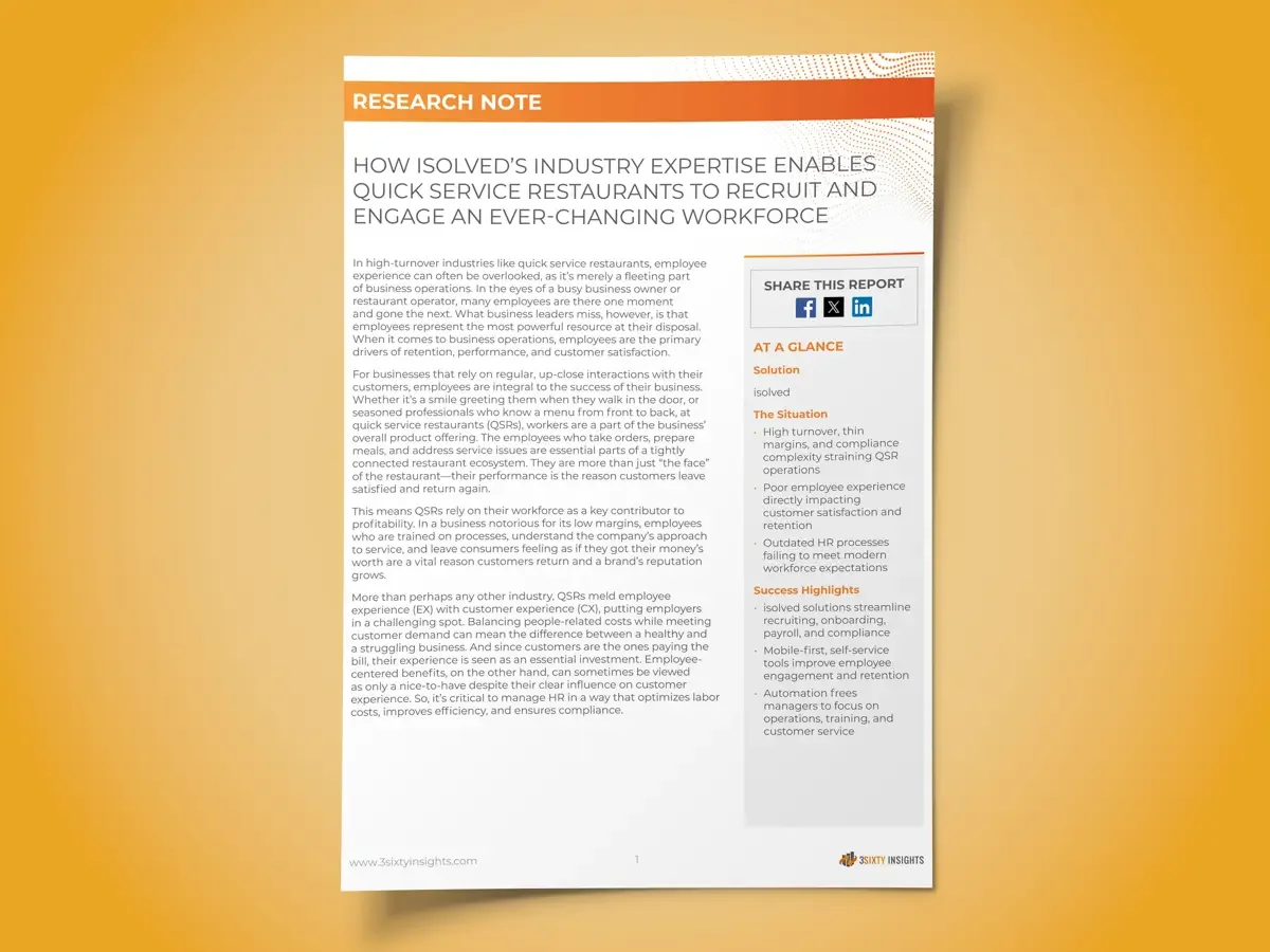 3Sixty Insights Research Note: How isolved Helps QSRs Recruit and Engage an Ever-Changing Workforce