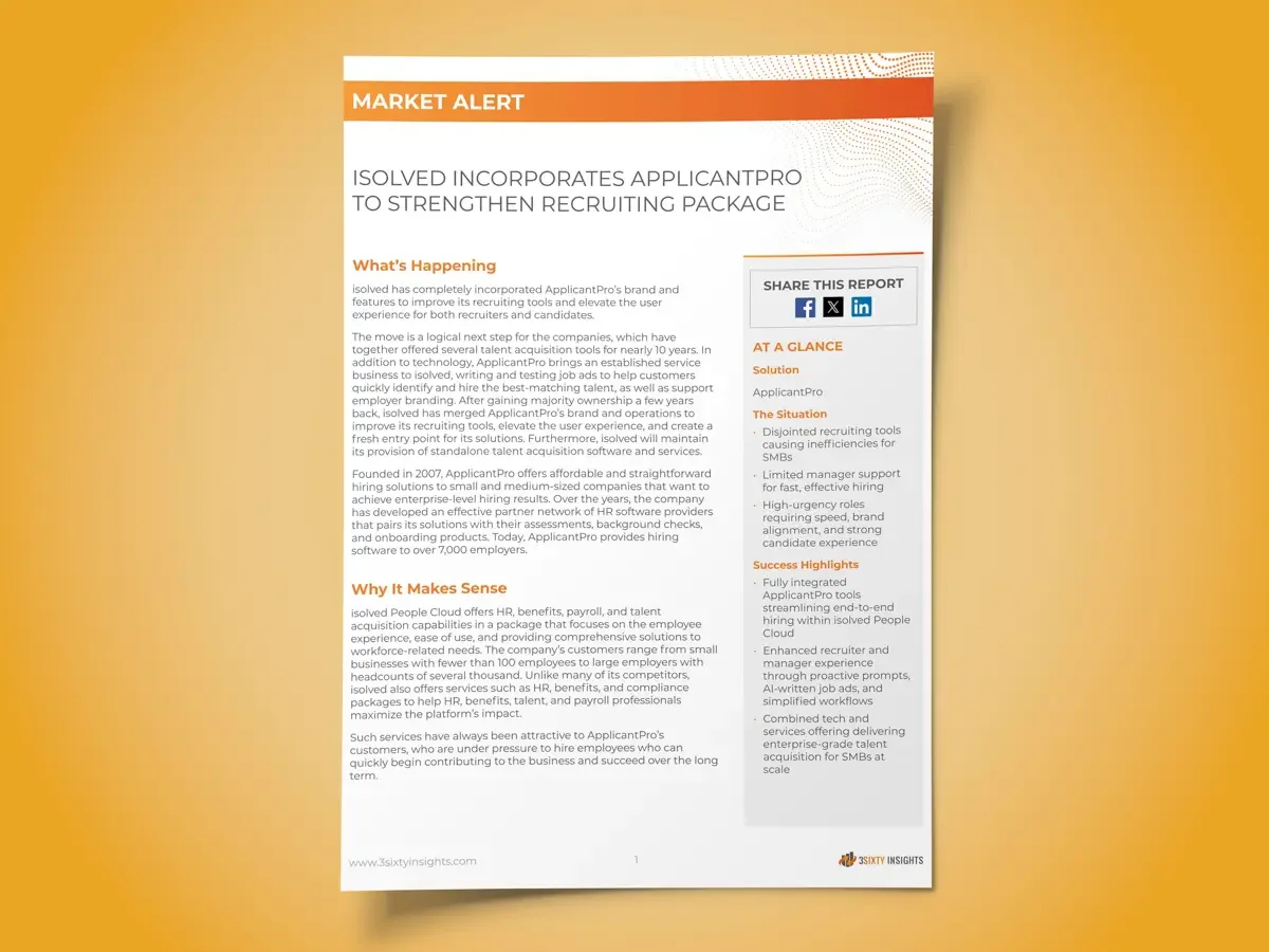 Market Alert: isolved Incorporates ApplicantPro to Strengthen Recruiting Package