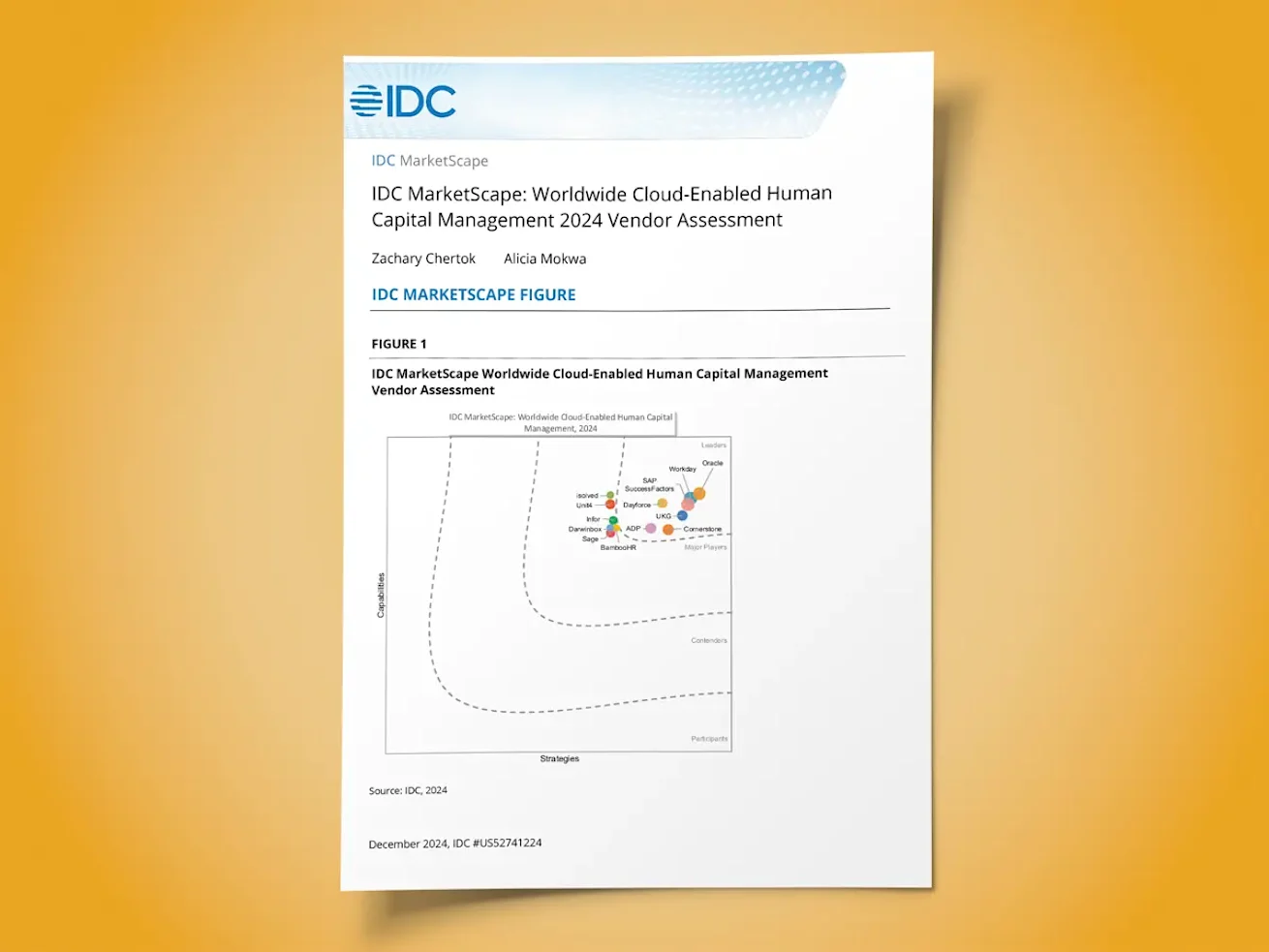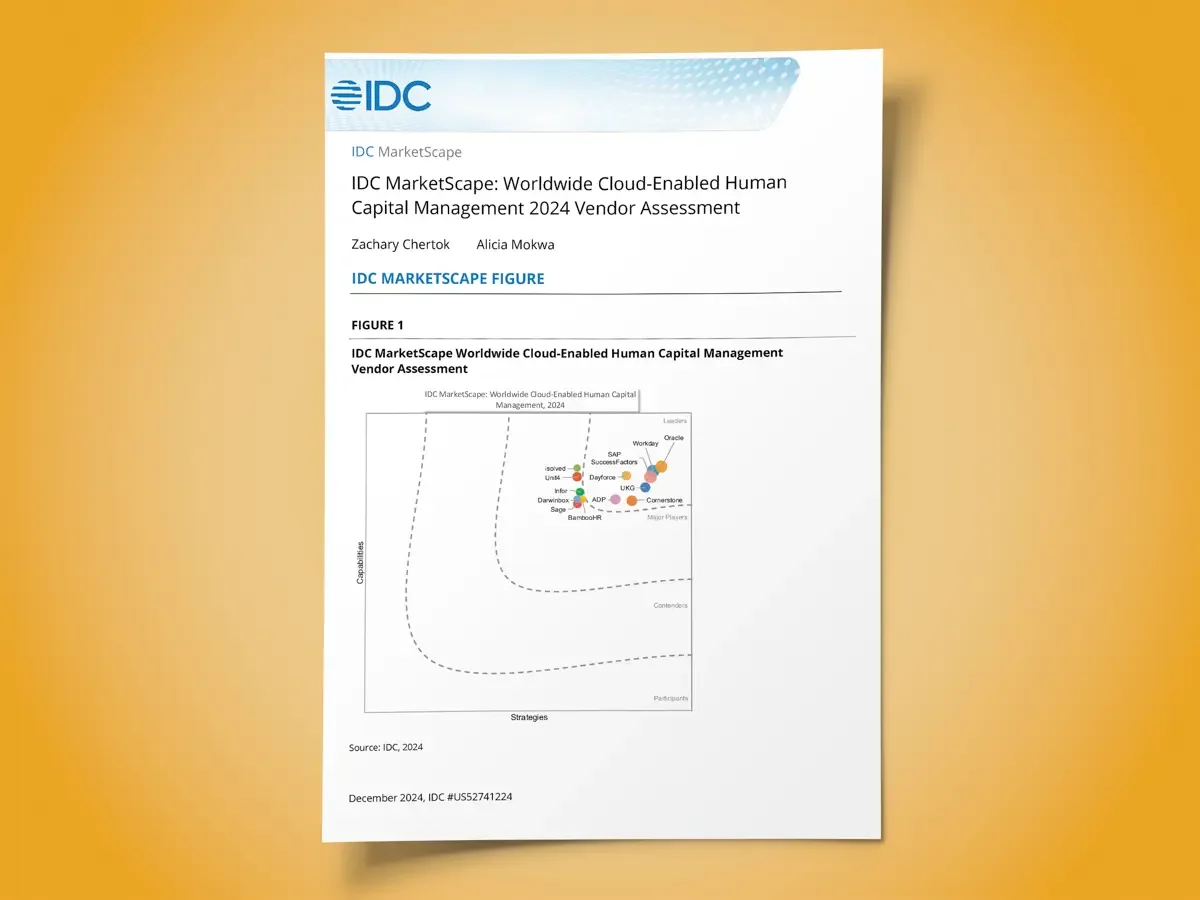 The IDC MarketScape study is a premier vendor assessment tool. It delivers an evaluation of vendor performance across cloud-enabled human capital management (HCM) platforms and solutions. The nature of HCM technology is constantly evolving, making the MarketScape study a must-have for HCM purchasers and decision-makers.