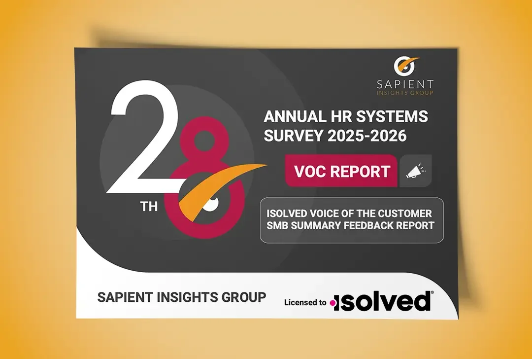 Sapient Insights Group’s 28th Annual HR Systems Survey captures Voice of the Customer ratings across human capital management (HCM)—revealing how small and medium-sized businesses (SMBs) evaluate their HCM partners on User Experience (UX) and Vendor Satisfaction (VS). In this year’s results, SMBs recognized isolved with top rankings across core HCM and talent capabilities—reinforcing the value of a connected platform that brings payroll, HR, time, benefits and more together in one experience.