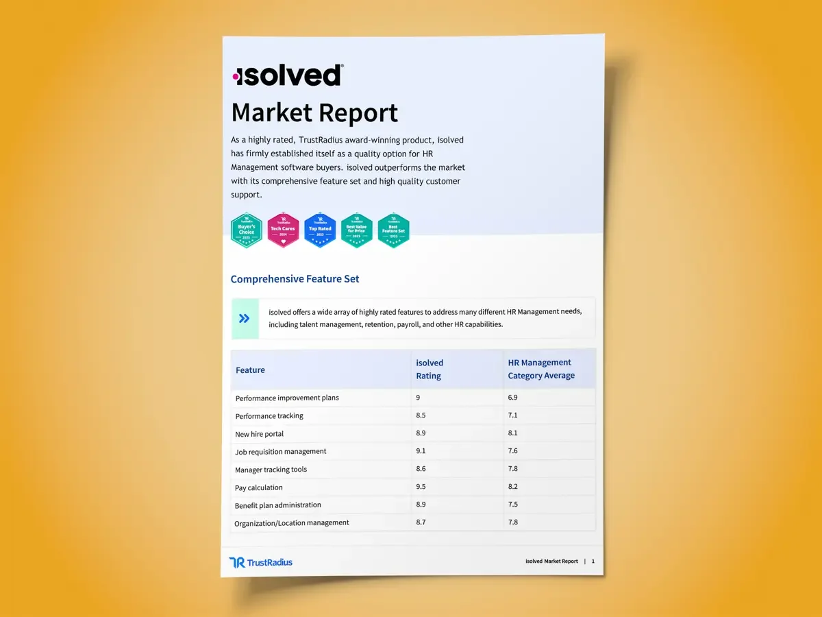 As a highly rated, TrustRadius award-winning product, isolved People Cloud™ has firmly established itself as a quality option for HR Management software buyers.