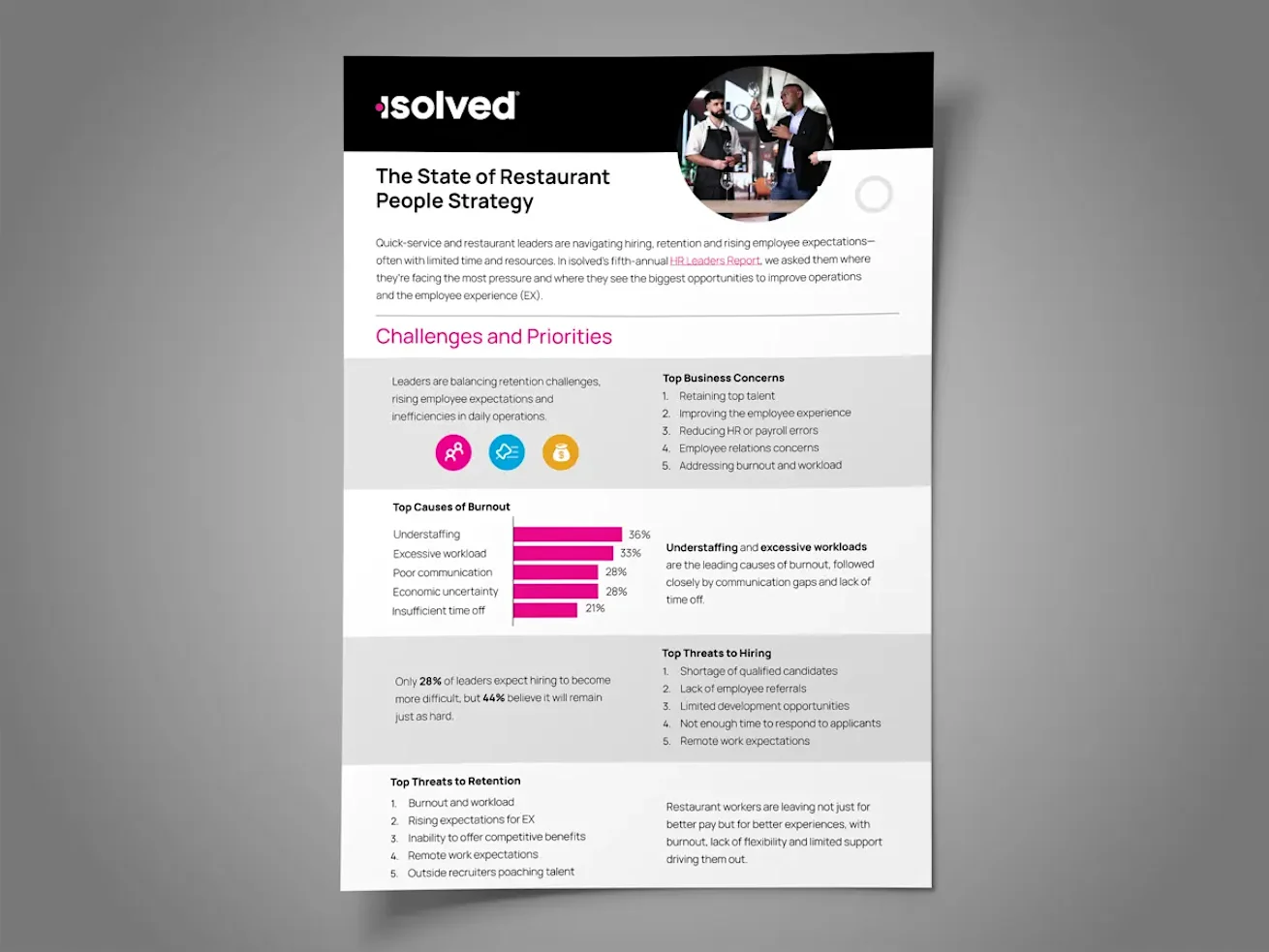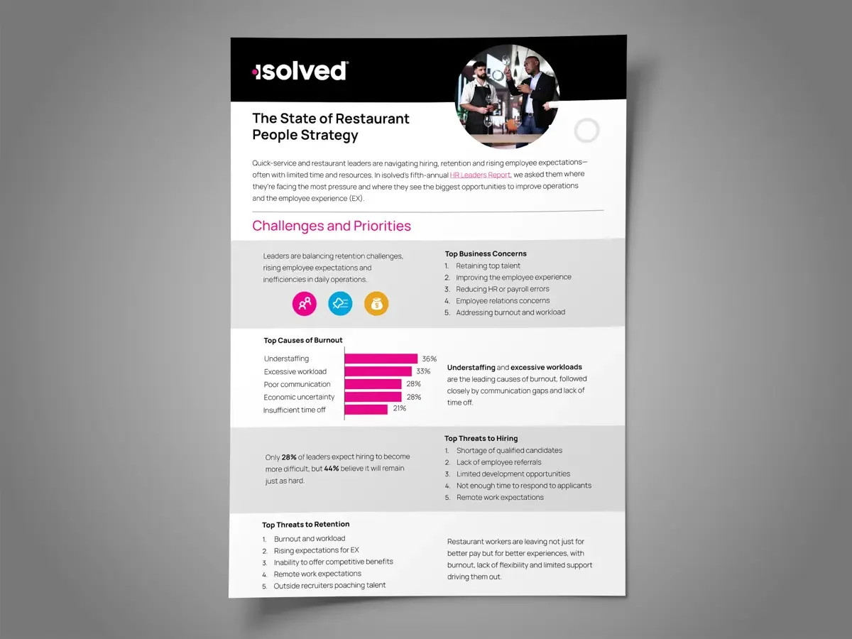 In isolved’s fifth-annual HR Leaders Report, we asked quick-service and restaurant leaders where they feel the most pressure, what’s slowing them down and where they see the best opportunities to improve operations and the employee experience (EX).