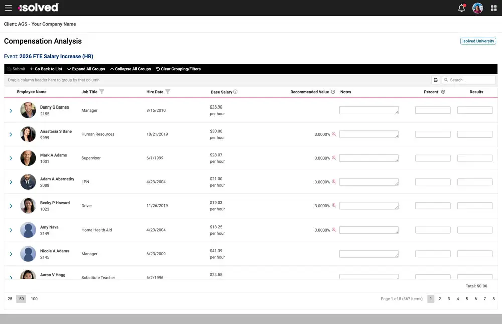 The right compensation strategy can be the difference between losing top talent and keeping them inspired to grow. isolved Compensation Management helps you design fair and competitive pay structures, streamline approval workflows and easily maintain compliance.